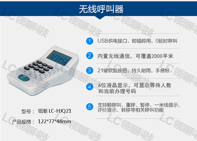 21鍵按鍵呼叫器(6位液晶顯示,2位等待人數(shù)4位排隊號碼,21按鍵)